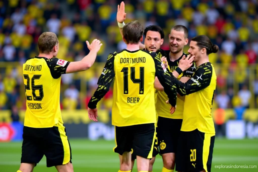 Jakarta – Borussia Dortmund menunjukkan dominasi besar saat mengalahkan SC Freiburg 4-0 di Signal Iduna Park, Minggu malam WIB. Hasil ini memastikan posisi mereka sebagai runner-up Bundesliga dengan 67 poin. Mereka kini tertinggal lima angka dari RB Leipzig yang menduduki peringkat ketiga. Meski menang, Dortmund tetap tak bisa mendekati Bayern Muenchen yang memimpin klasemen dengan selisih 15 poin (82 poin). SC Freiburg berada di posisi ke-8 dengan 43 poin, menurut situs resmi Bundesliga.