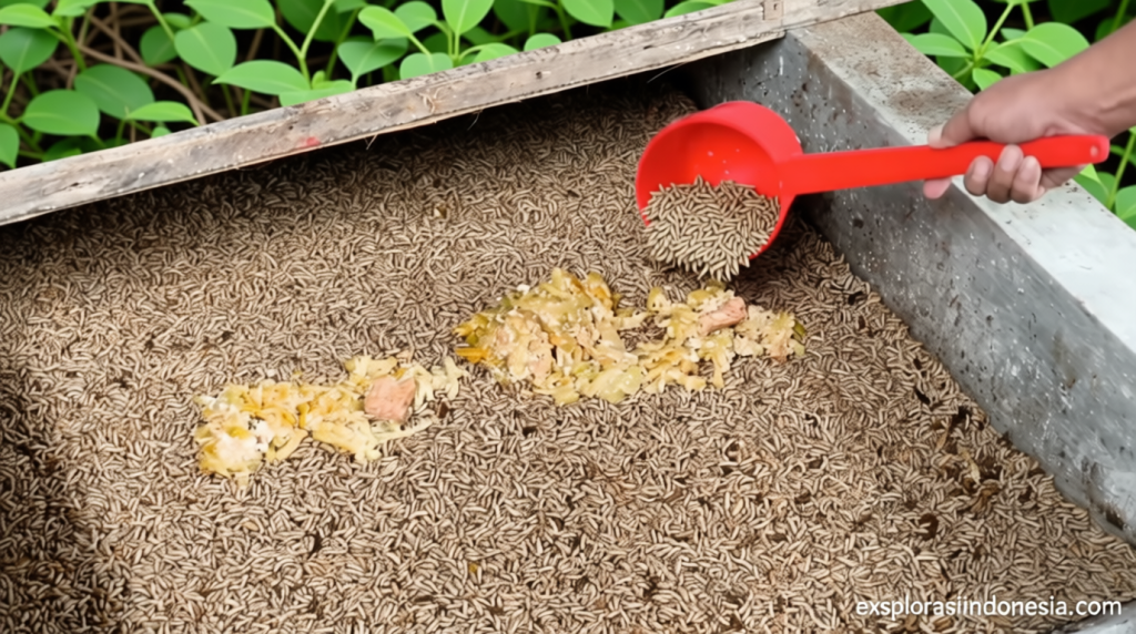 Dalam praktiknya, budidaya maggot memerlukan pengaturan lingkungan yang tepat, termasuk kontrol suhu, kelembapan, dan akses ke bahan baku. Wadah yang digunakan dirancang agar maggot dapat berkembang biak secara efisien, sementara limbah organik tidak terbuang percuma. Hasil produksi dapat langsung dimanfaatkan sebagai pupuk kompos atau bahan pakan ternak, menjadikan proses ini hemat waktu dan biaya.